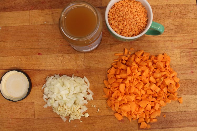 Zubereitung: Zwiebel, Möhren und Knoblauch schneidest Du in Würfel und brätst sie in Kokosöl an. Mit in den Topf kommen die Linsen und das Tomatenmark, wenn alles schön angeröstet ist, kannst Du es mit der Gemüsebrühe ablöschen. Das Ganze muss jetzt ungefähr 20 min. köcheln, bis die Linsen und Möhren schön weich sind. Sollte alles weich gegart sein, pürierst Du es zu einer feinen Suppe. Jetzt wird alles mit Salz, Pfeffer, Ingwer und Chili gewürzt. Ich mach sie gerne scharf. Da der Joghurt die schärfe wieder neutralisiert. 1 El vom Joghurt kommt zum Schluss auf jeden Teller der Suppe.